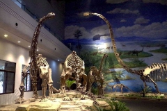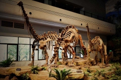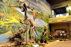 主展馆内,恐龙世界展厅采用现代流行的生态陈列,21具大小不一、属种不同、形态各异的恐龙,根据各自不同的生理、生活特性进行了塑造和组合,形成一组组既相互联系又各自独立的生态群雕形象,辅以仿真的环境,让人犹如在侏罗纪王国内穿梭,体验无限的原始与神秘。