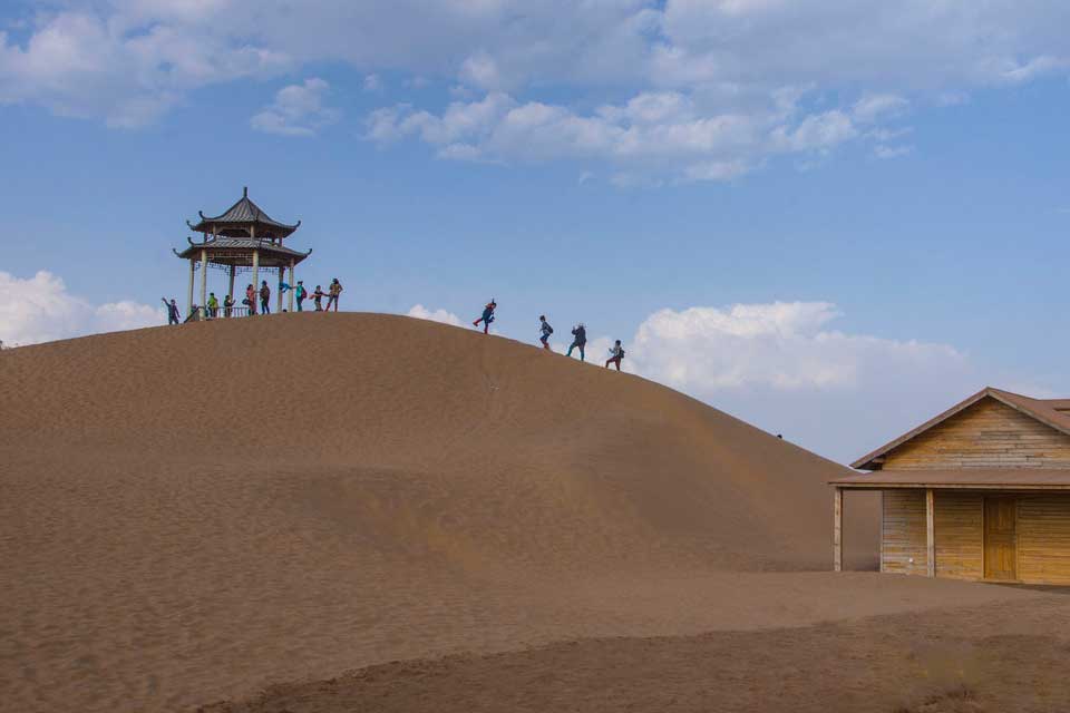 【沙海冲浪】 在沙坡头,有一条长200米、高80米的滑沙场,是中国境内最大的滑沙场。游客可乘坐滑沙板滑沙,从高处迅速滑落,大有沙海冲浪的感觉。