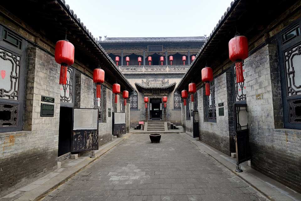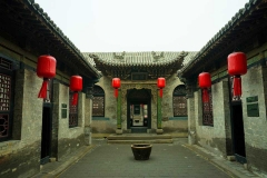 乔家大院位于山西祁县乔家堡村,又名“在中堂”。大院为全封闭式的城堡式建筑群,北距太原54公里,南距东观镇2公里,是清代全国著名的商业资本家乔致庸的宅第。大院占地10642平方米,建筑面积4175平方米,分6个大院,20个小院,313间房屋。大院三面临街,不与周围民居相连。外围是封闭的砖墙,高10米有余,上层是女墙式的垛口,还有更楼,眺阁点缀其间,显得气势宏伟,威严高大。大门坐西朝东,上有高大的顶楼,中间城门洞式的门道,大门对面是砖雕百寿图照壁。大门以里,是一条石铺的东西走向的甬道,甬道两侧靠墙有护墙围台,甬道尽头是祖先祠堂,与大门遥遥相对,为庙堂式结构。北面三个大院,都是芜廊出檐大门,暗棂暗柱。