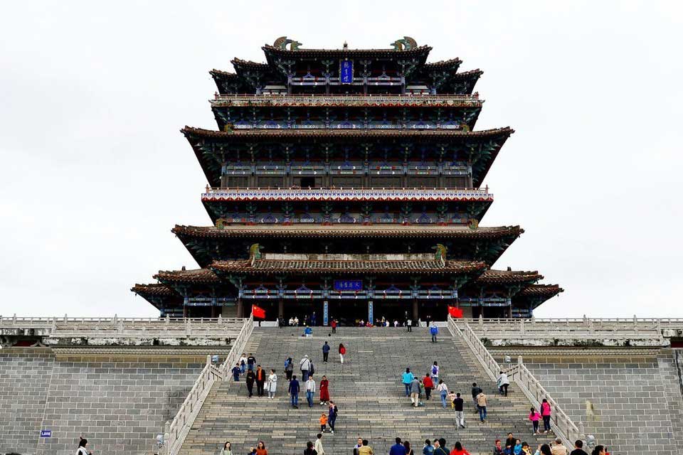 1997年月日12月3日,市委、市政府举行了奠基和七工典礼。鹳雀楼复建工程在黄河岸畔破土动工,该工程历经几年建设,于2002年9月26日主楼竣工,对游人开放,新建鹳雀楼系仿唐形制,四檐三层,总高73.9米,总建筑面积33206平方米。充分体现了唐代风韵和“欲穷千里目,更上一层楼”的意境。