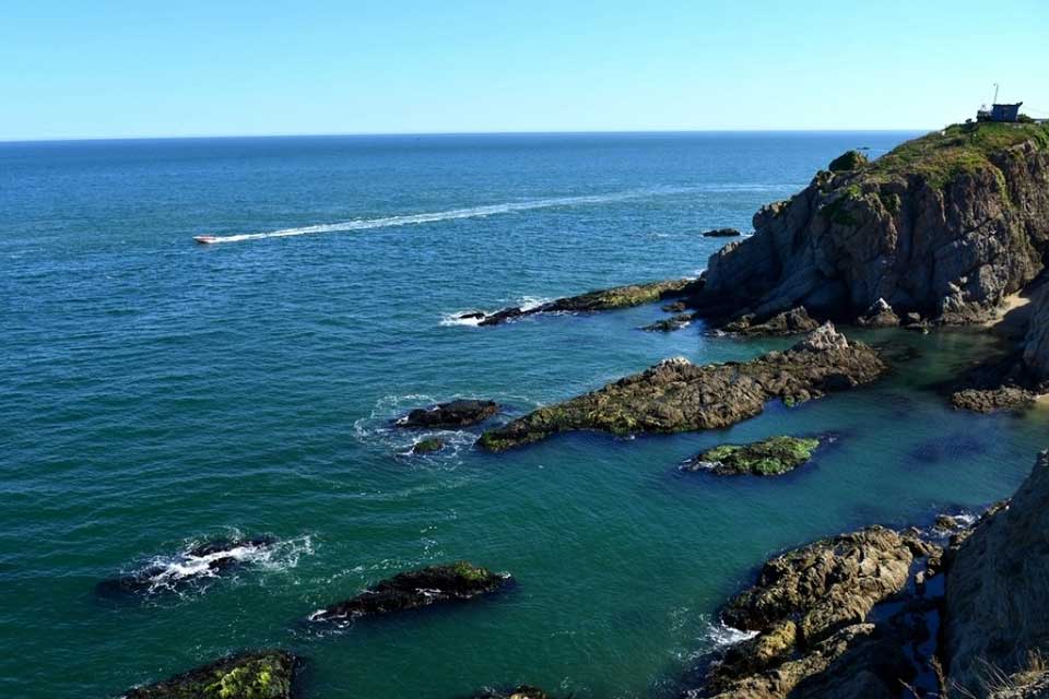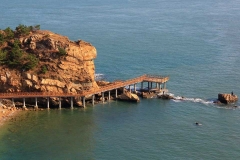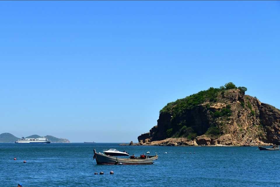 棒棰岛一个形似棒槌的小岛,在大连湾与老虎滩湾之间,距陆地0.39公里。属大连市中山区。岛形似棒棰故名。长410米,宽120米,陆地面积0.049平方公里,海拔52.8米。西高东低,南部有一天然石洞。震旦纪下震旦南芬组地层,地层倒转。岩性以石英岩、砾岩为主。植被覆盖。北面为群山环绕,南面是开阔的海域和平坦的沙滩。棒棰岛的东部,是长达500米的沙滩,沙质洁白细柔,海水清澈,是大连最好的海水浴场之一。沿岸海区生长着海蟹、海螺、海参等海珍,许多大连人和外地游客都喜爱到此亲身体验捕捞的乐趣。远处的三山岛(现以开发为海岛旅游度假区)云遮雾罩,空朦迷离,,传说是“三山五岳”中的三座仙山。周围的群山上长满了青松绿树,海滨浴场碧波银浪,金沙闪烁,这里是一个以山、海、岛、滩为主要景观的风景胜地。无居民。岛对岸原是渔村,1959年始建东山宾馆,1977年改名棒棰岛宾馆。宾馆依山傍海,环境清幽,花木繁茂,有清澈的海湾浴场,风格各异的11栋别墅连为一体,是闻名中外的避暑胜地。