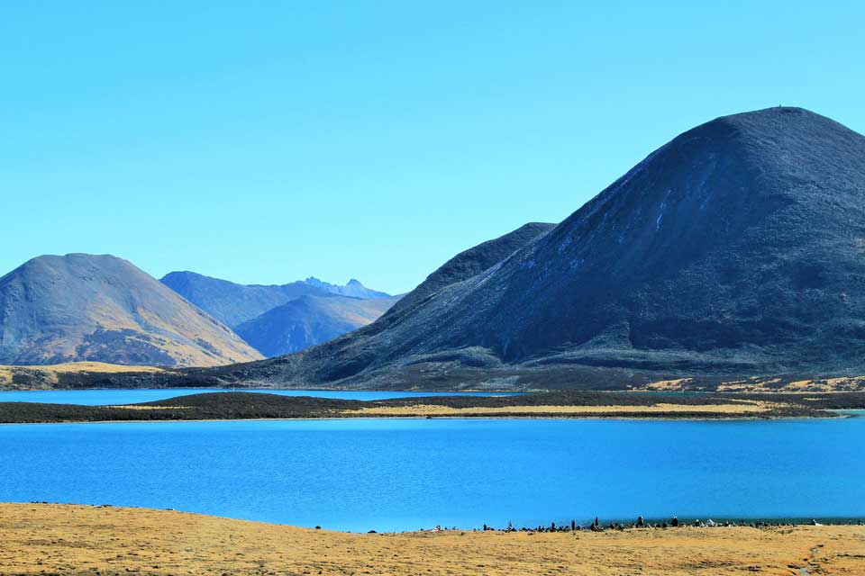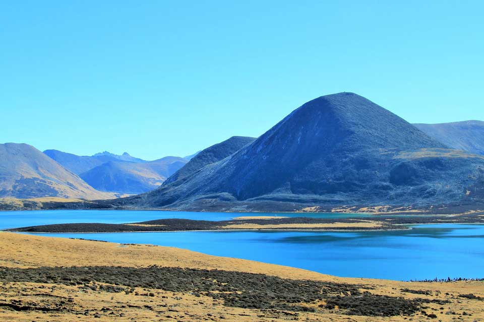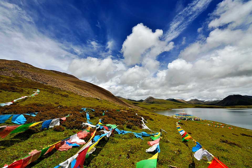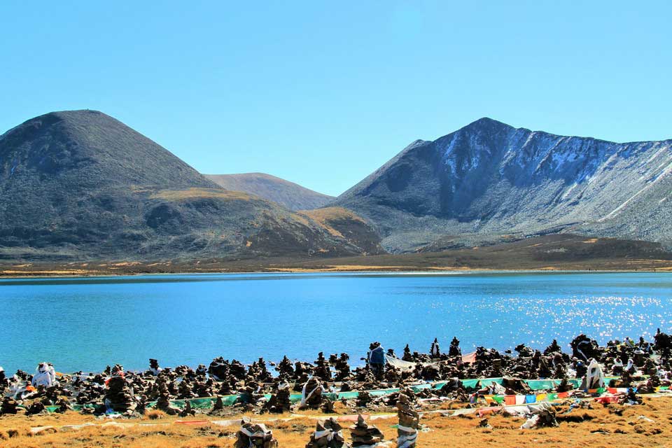 山的左边可供祭拜黑湖及山的右边是前往神湖参观旅游的路口。在它的四周小湖泊星罗棋布,每个湖泊都有不同的象征意义和历史渊源,还有显灵的传说。在东面有象征五飞天的五个小湖,南面有象征六趣的六个湖,西面有象征八尊古如(莲花生大师八大变化身)的八个小湖,北面有象征“三怙主”的三个小湖。