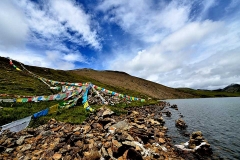 神湖往东望去的山脉上驻有十六尊罗汉,东南边还可看见雪域著名的摸顶山,供世人膜拜。传说祭拜此神山不仅能积累福运。思金拉措神湖的南边山脉供奉的曼陀罗,西边山脉大象背上的宝座。