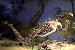 自贡恐龙博物馆的现有基本陈列“侏罗纪恐龙世界”,按照“恐龙世界——恐龙遗址——恐龙时代的动植物——珍品厅——恐龙再现”顺序展开,吸收现代陈列理念,采用场景式展示、拟人化组合,辅以多媒体等展示手段,展开了一幅壮观、神奇瑰丽的画卷,再现了由恐龙及许多早已消失的物种构成的神秘多姿的侏罗纪时代。突出展示了博物馆的精华—化石埋藏现场,给人视觉冲击和心灵震撼,体现专业博物馆与遗址博物馆的双重特色。