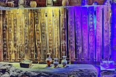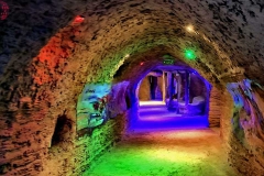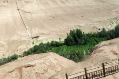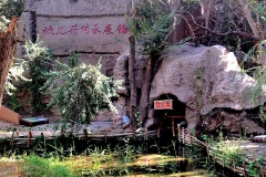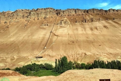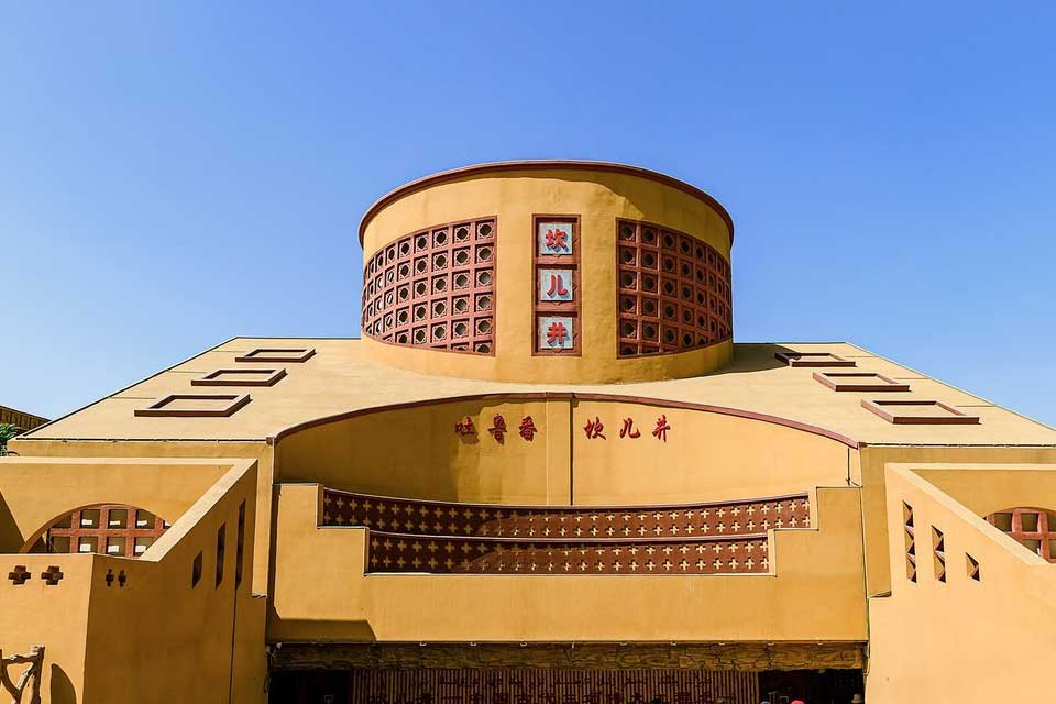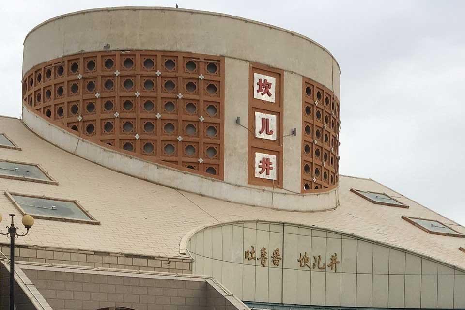 坎儿井是与长城、大运河相媲美的古代三大人文工程之一,是吐鲁番的母亲河,火洲的生命之源。坎儿井,维吾尔语叫坎儿孜,原为地下水道之意。是古代吐鲁番人民劳动智慧的结晶。它由竖井、暗渠、明渠、涝坝(蓄水池)四部分构成,在盆地边缘由高向低打若干口立井,再将立井逐次从地下挖通连成串,水便从地下引出地表。吐鲁番上千条坎儿井中,名气最大的首推米衣木阿吉坎儿井,全长5公里,最深处为80米,日水量可浇地70亩,已有200年的历史。在吐鲁番坎儿井中很有代表性。