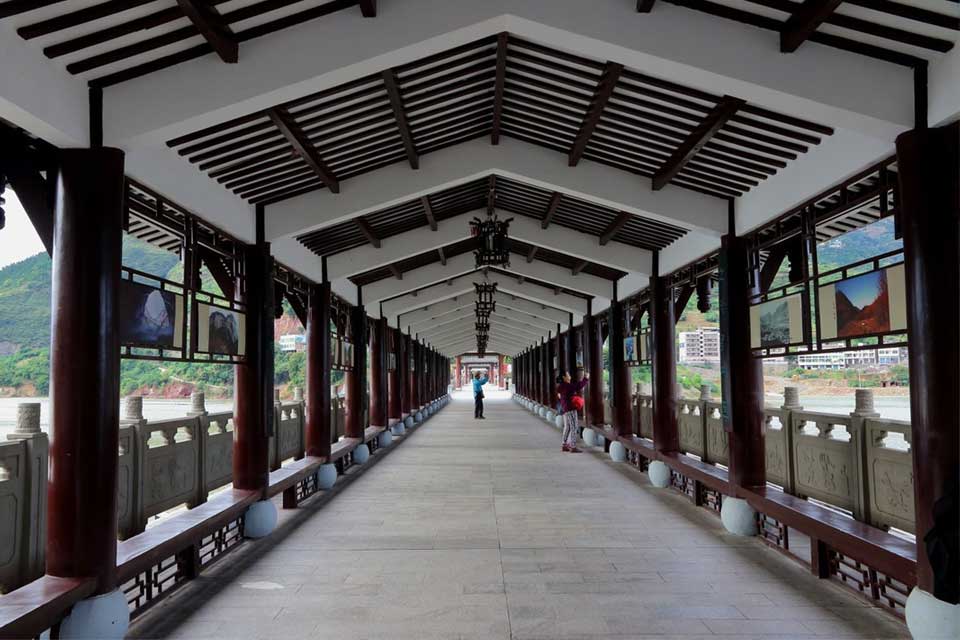 【瞿塘峡古栈道】 位于瞿塘峡口至白果背一带,全长12千米,最宽处3米,最窄处1米,高2.5米。清道光三年(1823年)建白果背一段栈道,光绪十五年(1889年),夔州知府汪鉴筹款开凿风箱峡至西边峡口一段。在瞿塘峡内一段有4千米全是在悬崖绝壁上开凿出来的槽形路基,施工时,“工匠无所凭借,对壁凿孔,层累而上”。栈道修成后,能行夔州知府的八人大轿。漫步栈道,上顶万丈悬崖,下临滔滔大江,仿佛凌空遨游。为了纪念这一千古壮举,后人在崖壁上刻“开壁奇功”和“天梯津棣”的赞词。三峡大坝蓄水后,瞿塘峡古栈道大部被淹没。2016年启动古栈道复建工程。