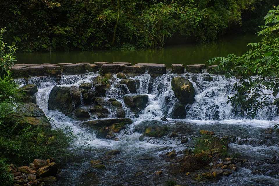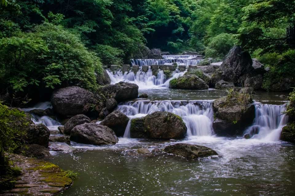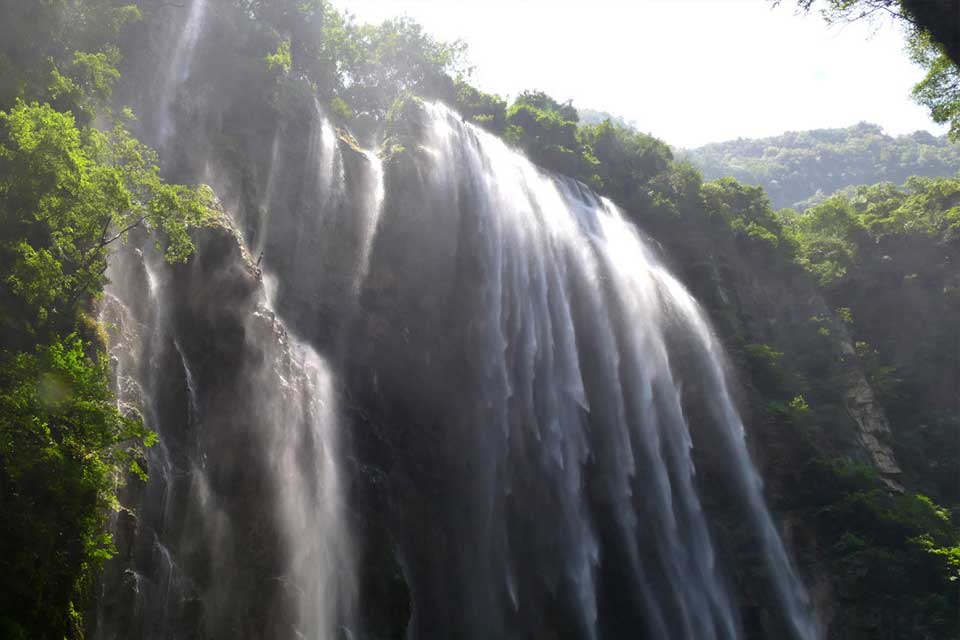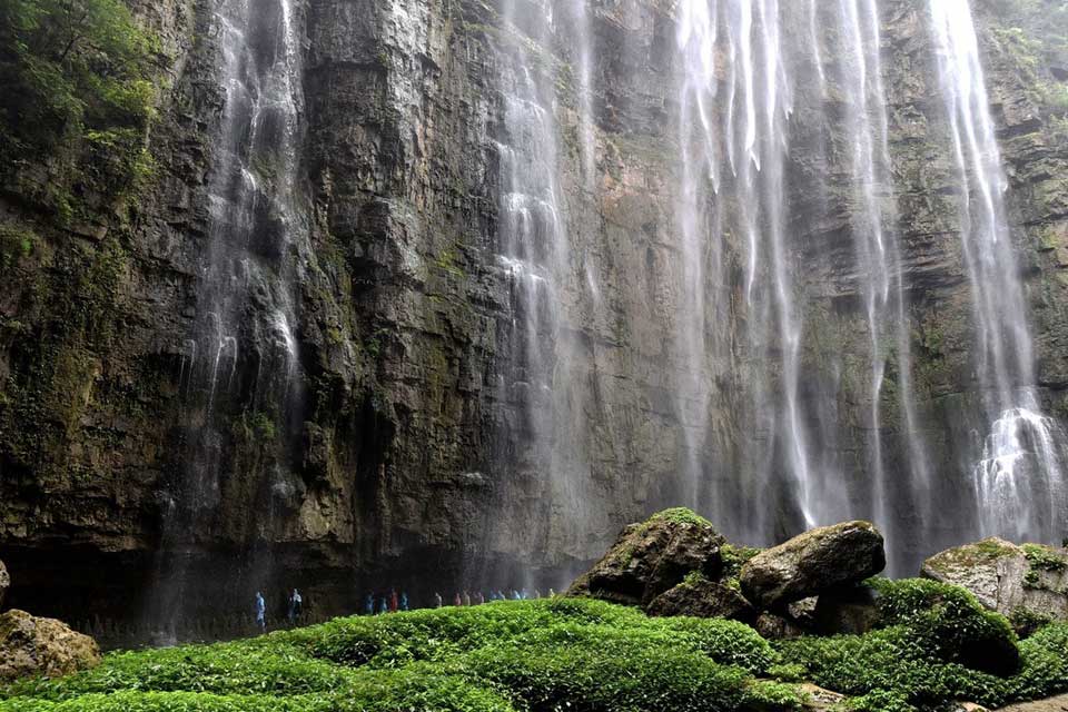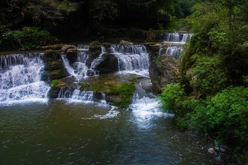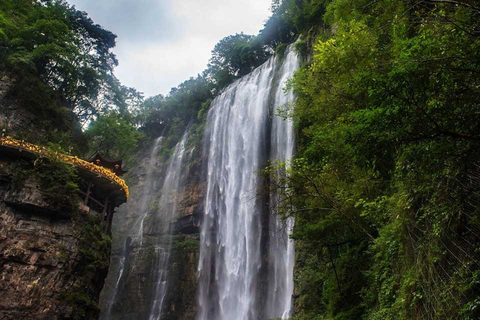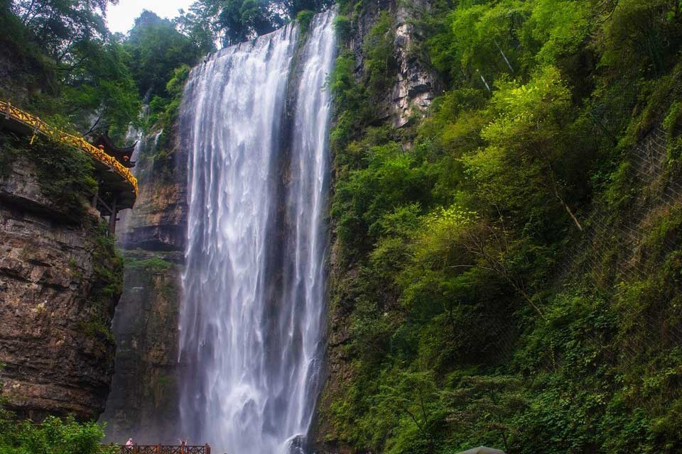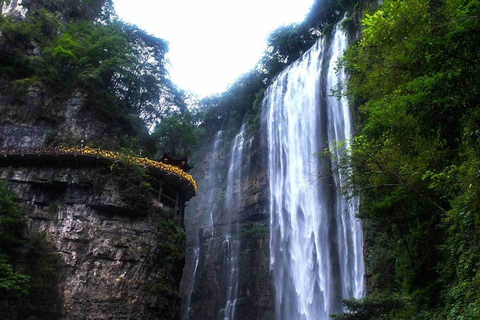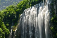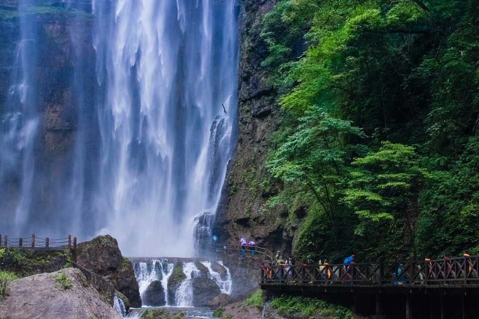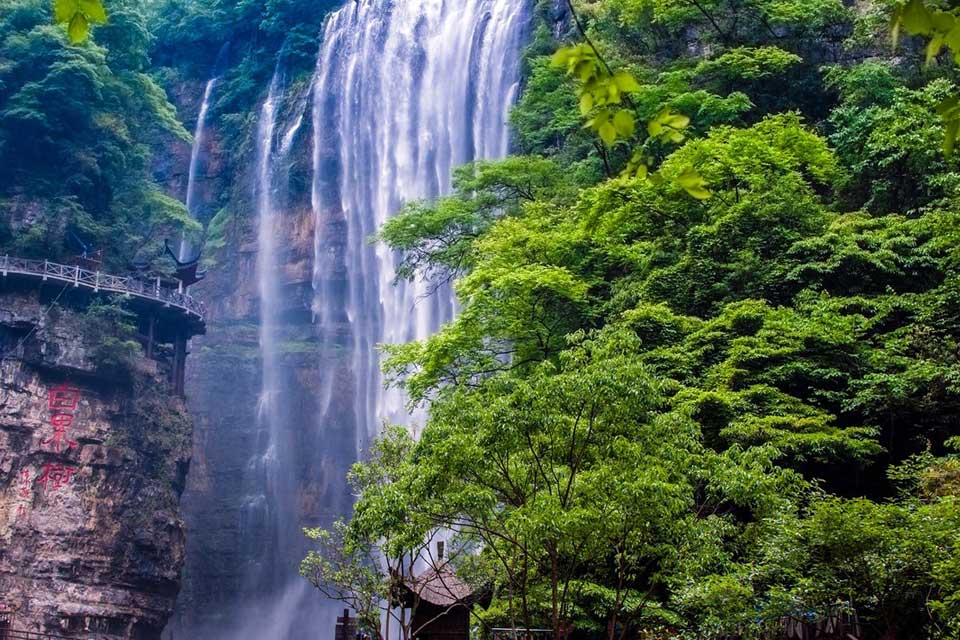 【三峡大瀑布】 三峡大瀑布原名白果树瀑布,位于长江三峡西陵峡口,被誉为“中国十大名瀑”的第三大瀑布。主瀑高102米,宽80米。峡谷绵延10千米,从入口溯溪而上,滴水瀑、虎口瀑、子母石叠瀑群、珍珠瀑、响水瀑、双飞瀑等30余道大小瀑布,分布沿途,溪流全长5千米。